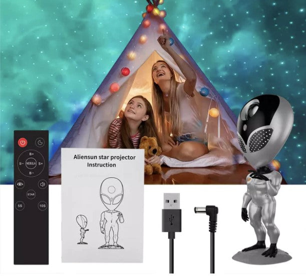 Fjärrkontroll, röststyrning och timer: Med fjärrkontrollen kan du styra dimljusen och norrskenet till och från. Du kan justera ljusstyrkan, ändra belysningsläget och visa en mängd olika dimeffekter. Röstfunktionen gör att Alien upprepar det du säger!