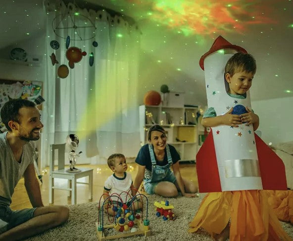 Denna coola nattlampa visar rymden i ett nytt ljus. Se galaxer och stjärnor svepa förbi i taket i olika ljus och mönster.