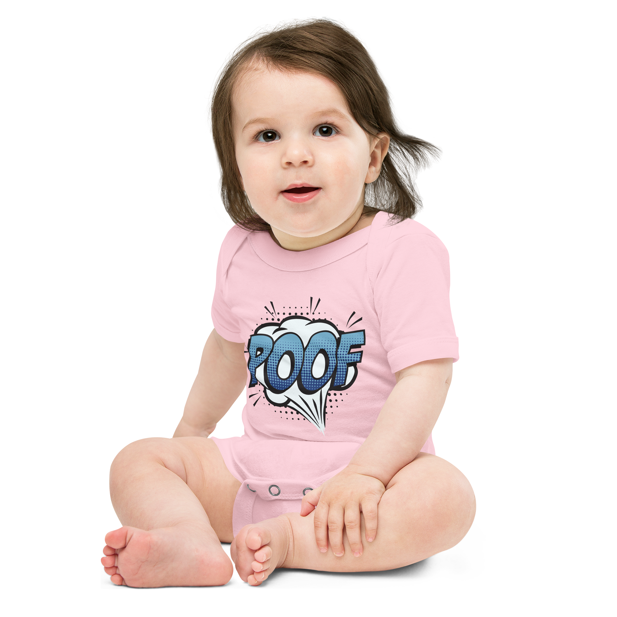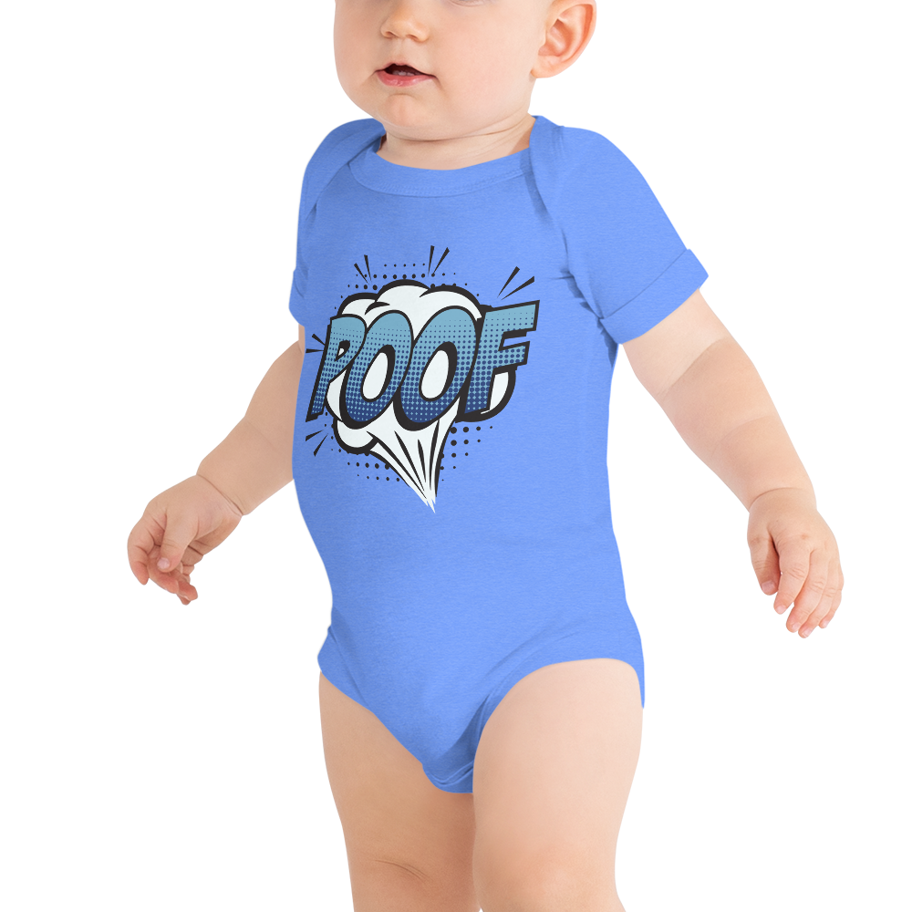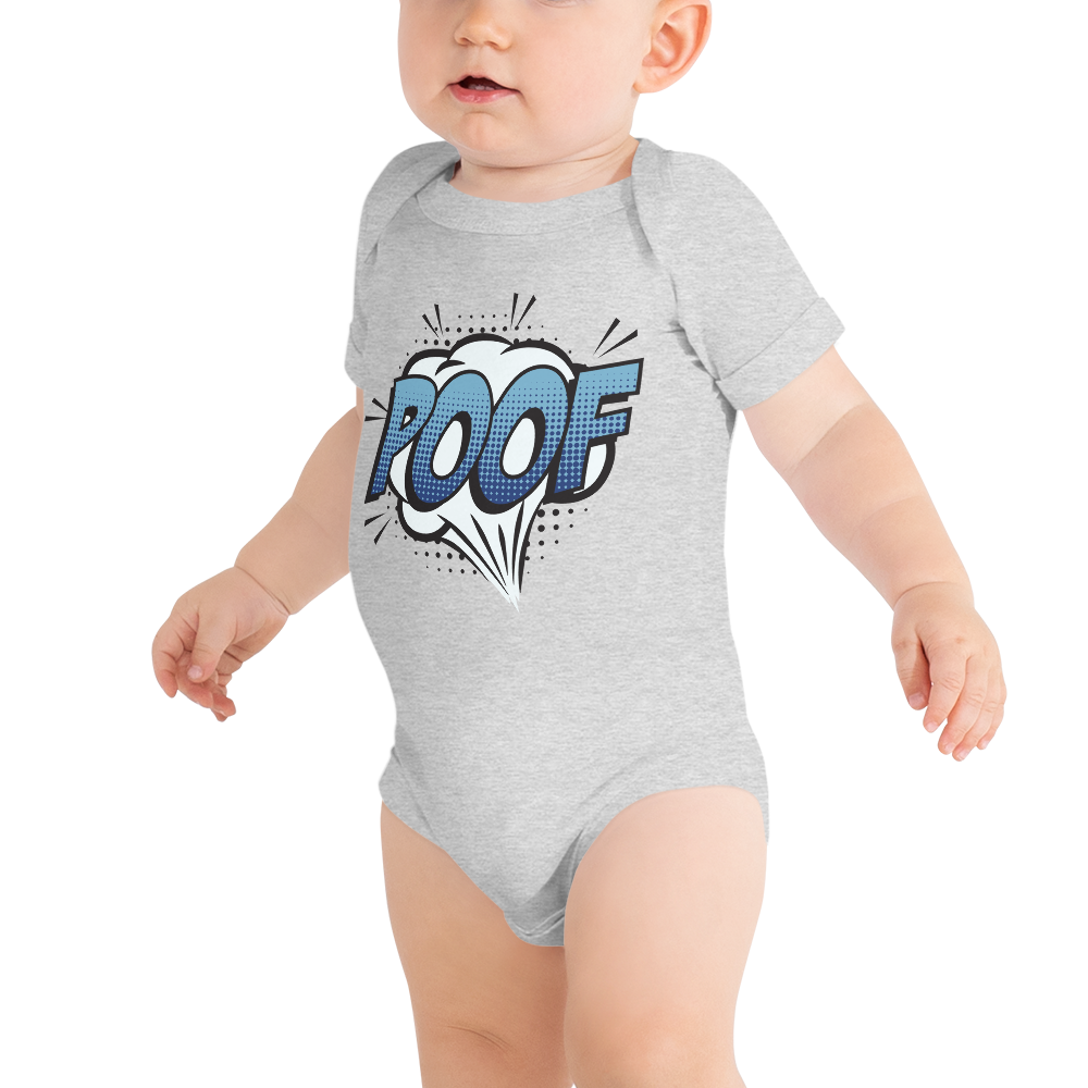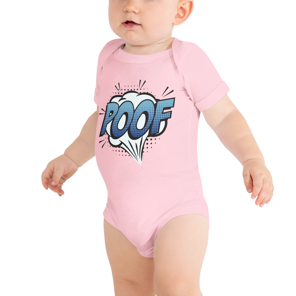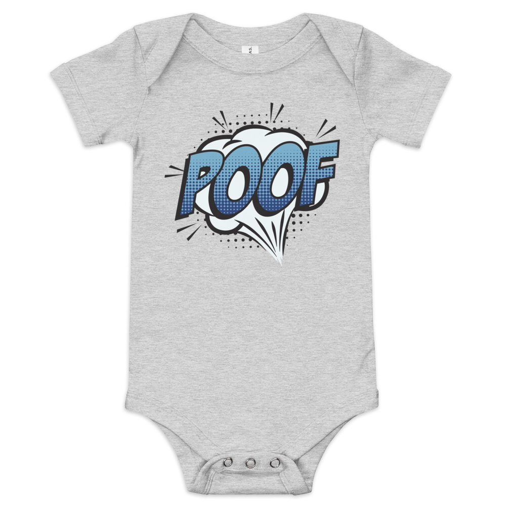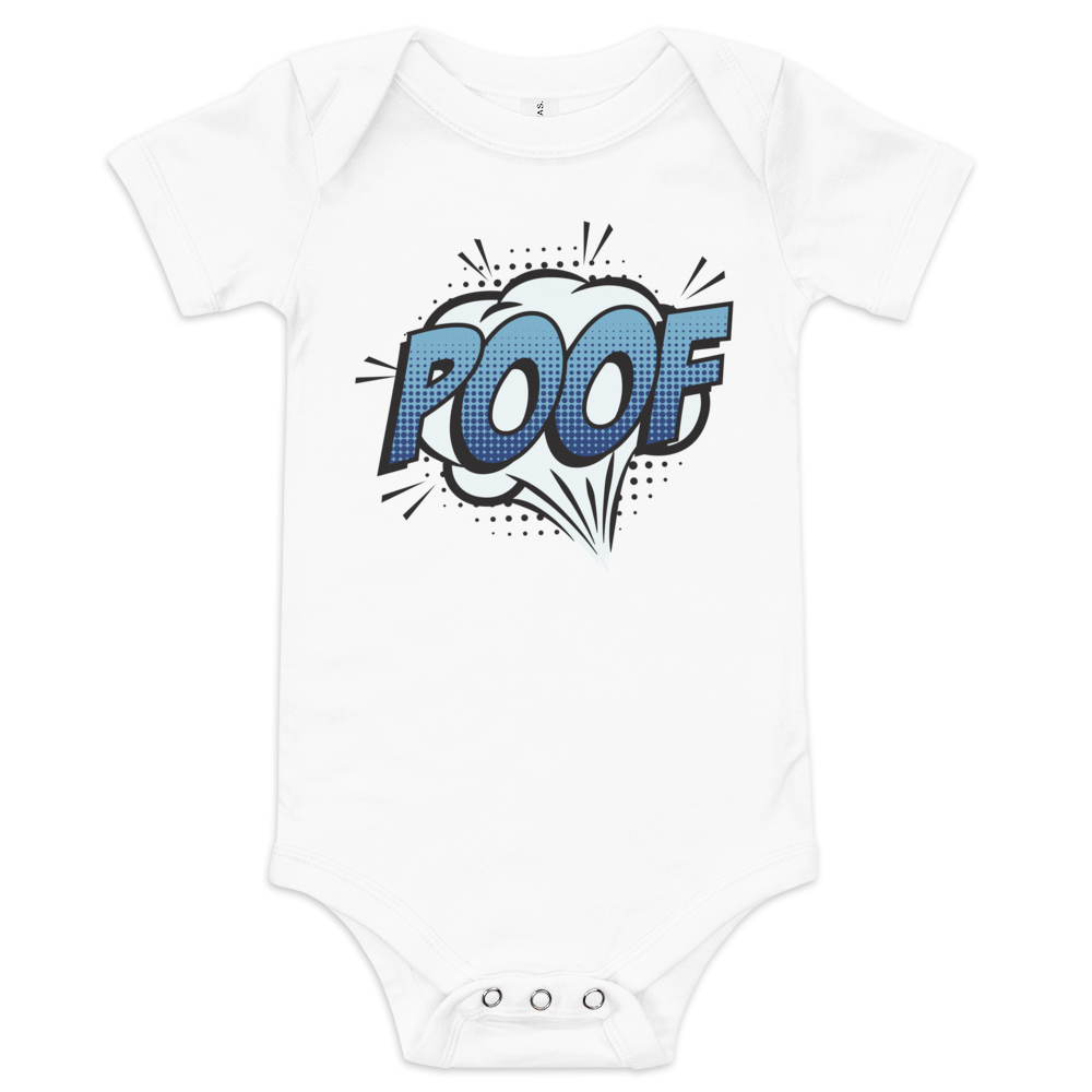 Babybody med texten "POOF"