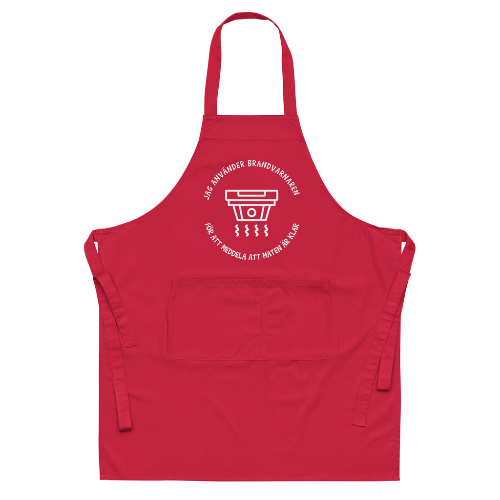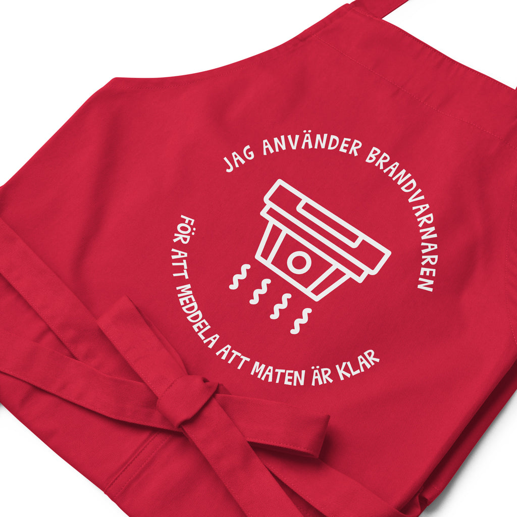 Förkläde med texten "Jag använder brandvarnaren"