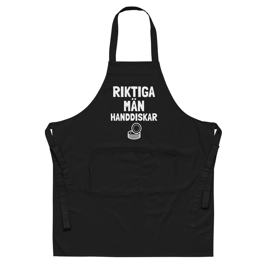 Förkläde med texten "Riktiga män handdiskar"
