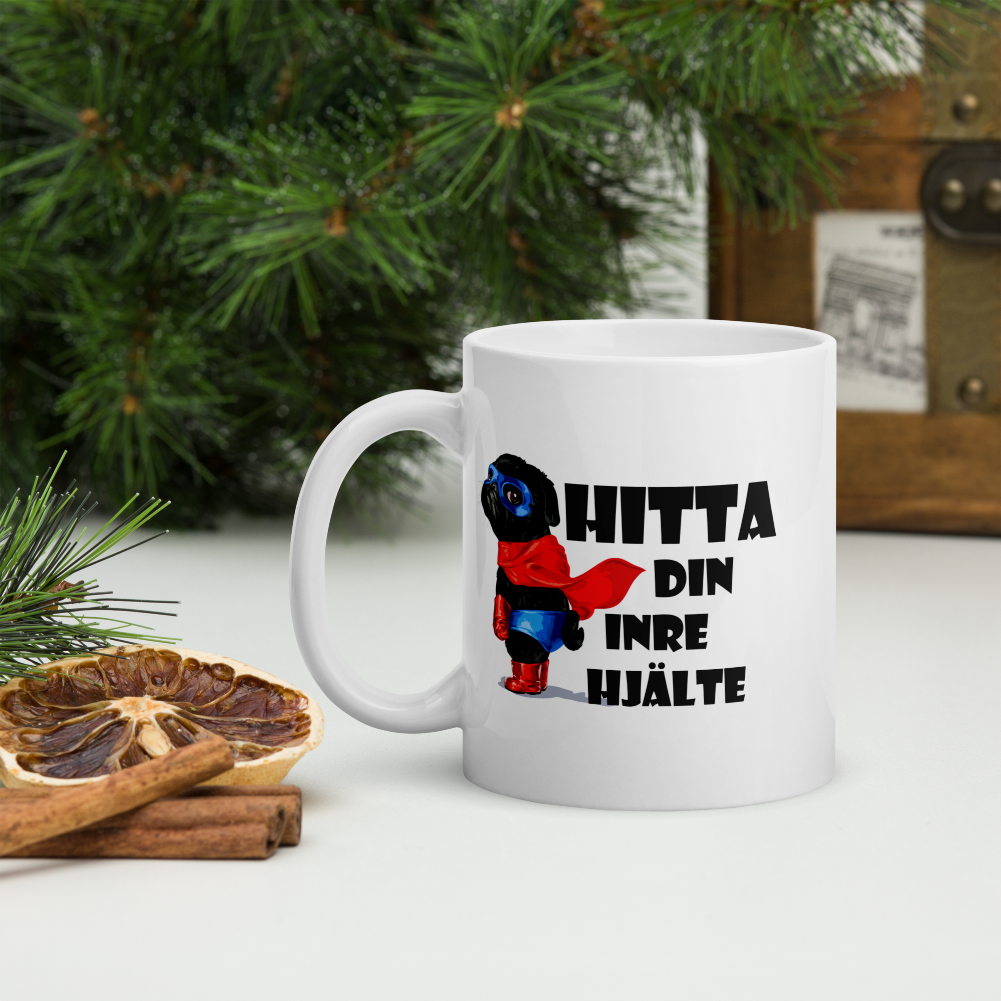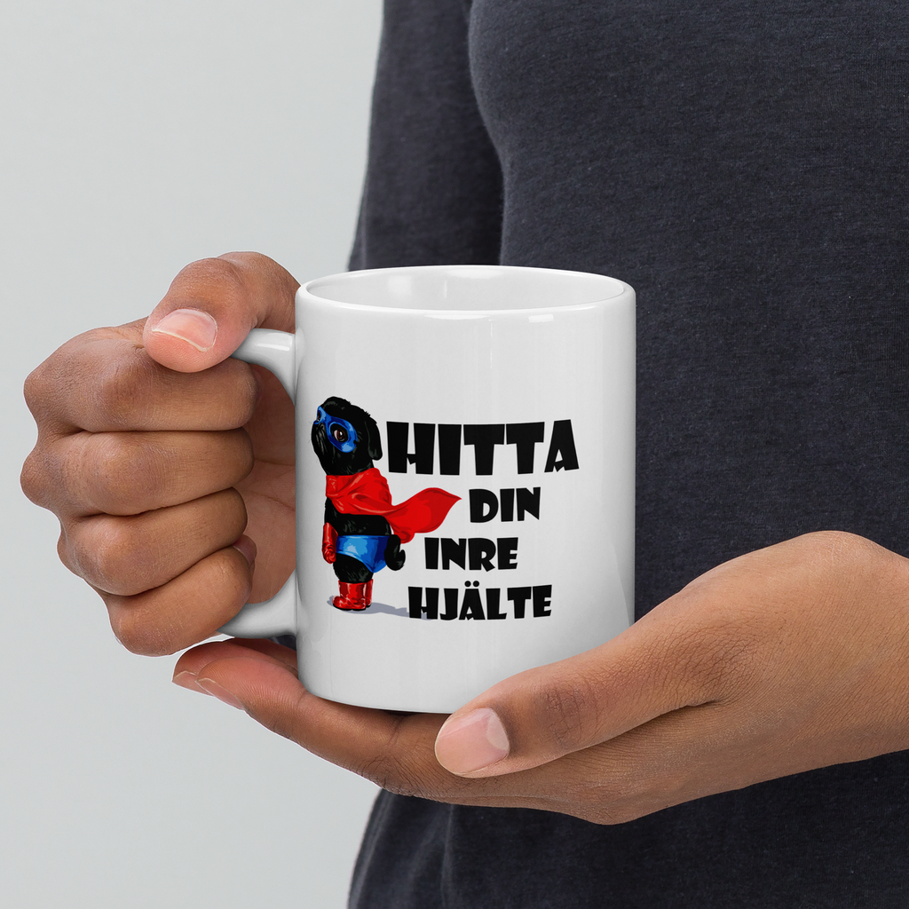 Porslinsmugg med texten "Hitta din inre hjälte"