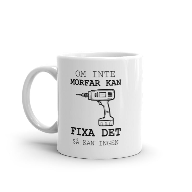 Porslinsmugg med texten "Om inte morfar kan fixa det så kan ingen"