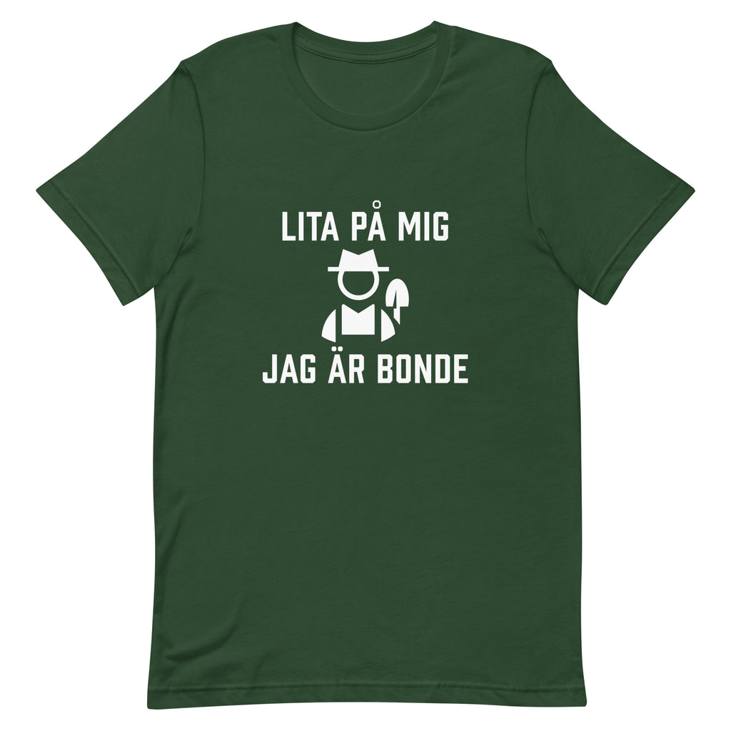 T-shirt med bild texten "Lita på mig, jag är bonde"