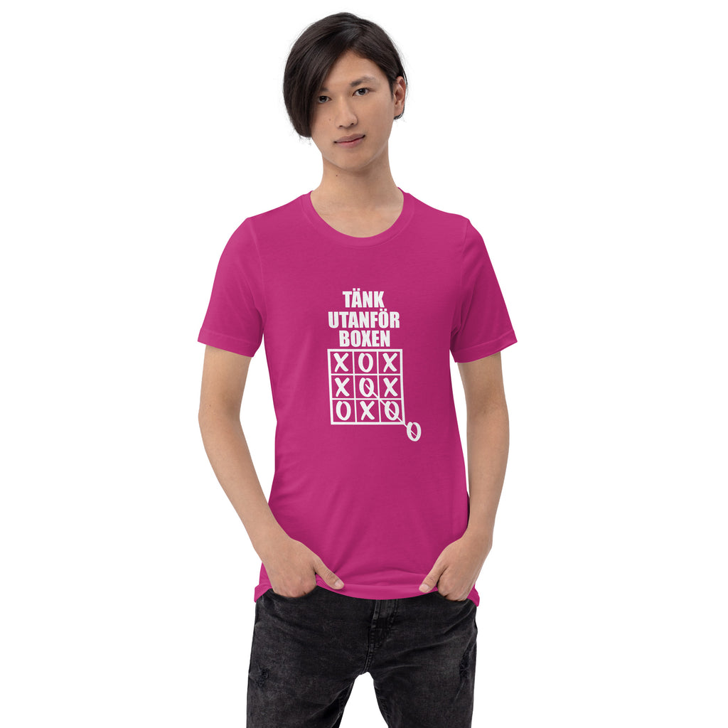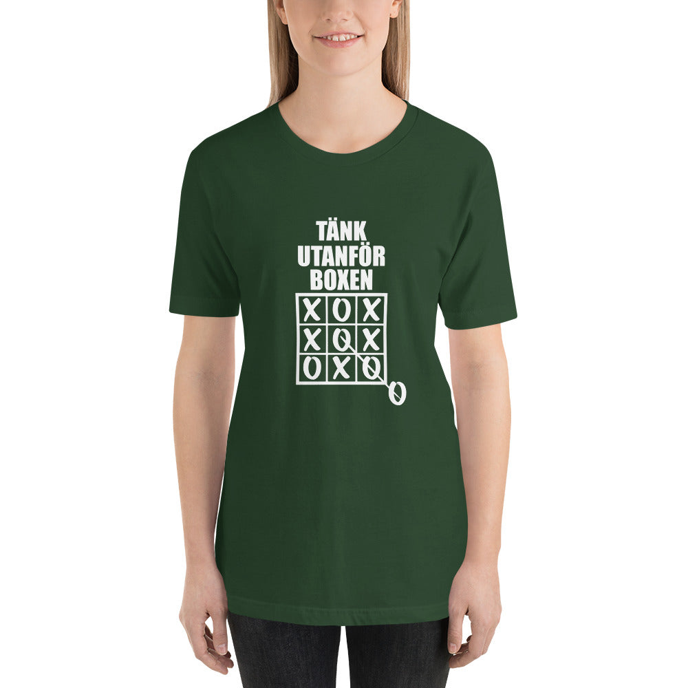 T-shirt med bild texten "Tänk utanför boxen"